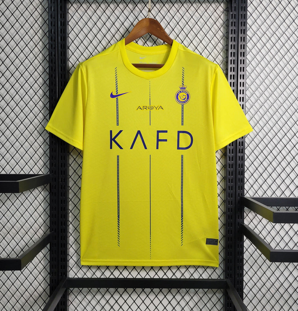 Show your love for Al Nassr FC with the Home Jersey 2023/24 Season. Add elegance and passion to your wardrobe with this affordable yet high-quality football jersey, perfect for every fan.