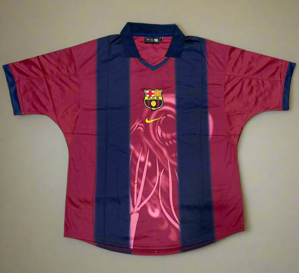 This jersey is a reimagined tribute to classic Barça kits with a modern edge inspired by Travis Scott’s Cactus Jack aesthetic. The rich maroon and navy stripes stay true to the Catalan legacy, while the bold and artistic graphic of the iconic La Sagrada Família with the Barça crest front and center adds a mystical and edgy vibe. Whether you’re on the pitch or in the streets, this jersey demands attention and respect.