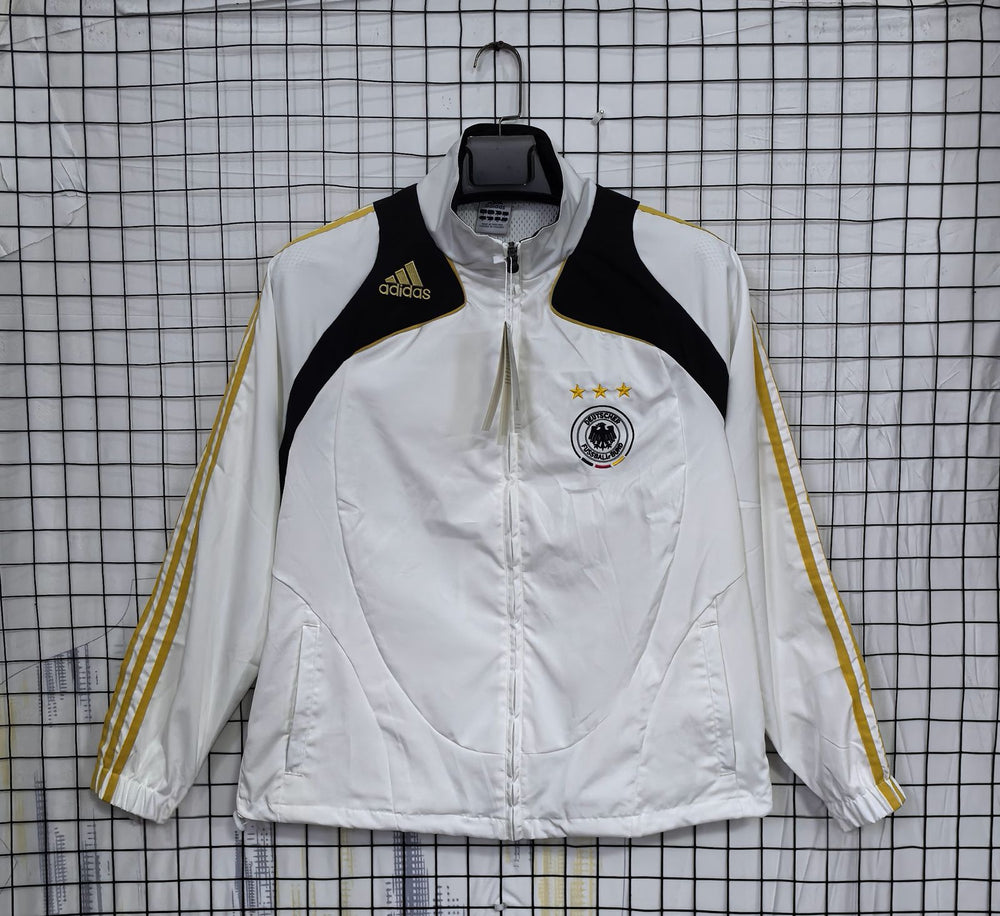 Upgrade your football style with the Germany White & Gold Windbreaker 25/26 Season, designed for fans who appreciate elegance and performance. Featuring a clean white base with striking gold accents, this windbreaker delivers a premium look inspired by Germany’s iconic football heritage.
