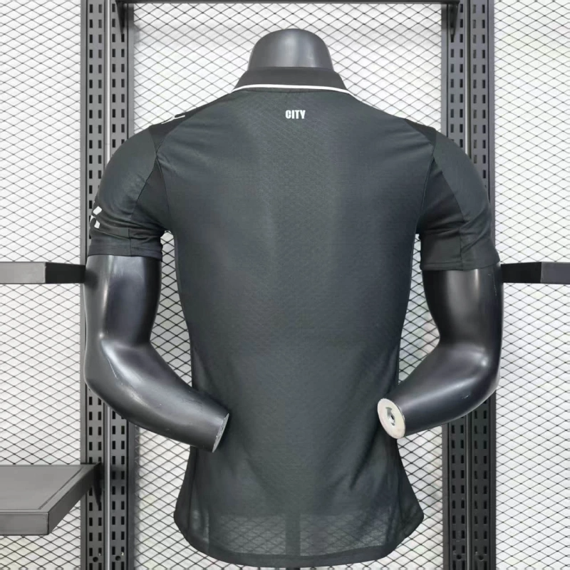 The new away shirt arrives dipped in all-black — sleek, sharp, and unapologetically minimal. Metallic silver detailing throughout — from the logo to the iconic club crest — adds a contemporary gleam to the old-school base, catching the light like a trophy lifted under floodlights. It's a quiet flex. A whisper that says, “we’ve been here since the start.” The shirt is finished with a polo collar, subtly trimmed in silver, dialing up the class without overplaying the nostalgia. It’s heritage with swagger. Timeless with teeth. As always with City, it’s not just about looking good — it’s about identity. This kit isn’t just a throwback. It’s a tribute to the early Cityzens, and a reminder that before the silverware and the world-beating football, there was black, there was steel, and there was belief.