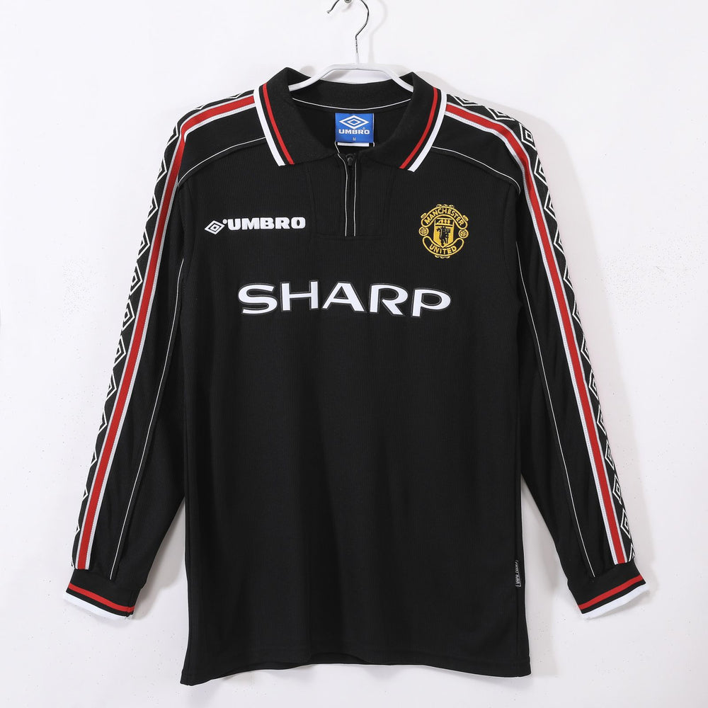 Step into football nostalgia with the Manchester United 1998 Black Retro Jersey — a bold tribute to the Red Devils' late-90s dominance. Featuring the iconic blue and white vertical stripes, this kit was worn by legends like David Beckham, Ryan Giggs, and Paul Scholes during an era that laid the groundwork for the historic Treble season.