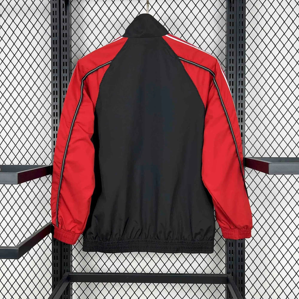 Step back into the late ‘90s glory days with this Manchester United 1998 Retro Windbreaker, a true classic for the Red Devils faithful. Designed by Umbro, this iconic jacket features a black body with bold red sleeves, accented by Umbro’s signature diamond pattern running down the arms. The Manchester United crest sits proudly on the chest, symbolizing one of the club’s most dominant eras.