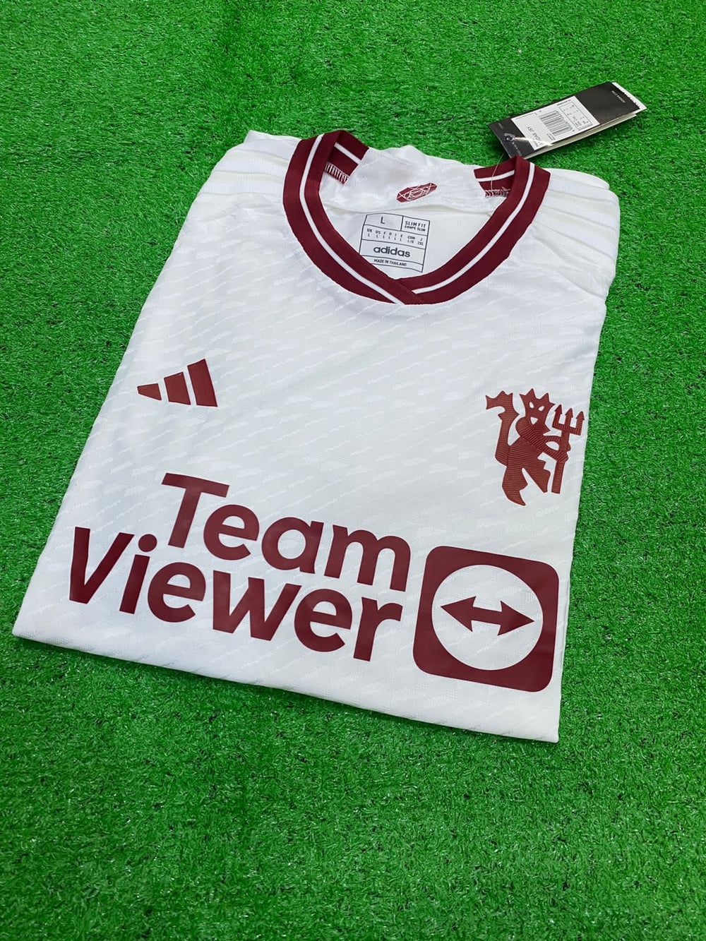 Stand out like the pros with the Manchester United Third Jersey 23/24 – Player Version. Designed for performance, this jersey is the same style worn by the Red Devils on the pitch during their away and third kit matches in the 2023/24 season.